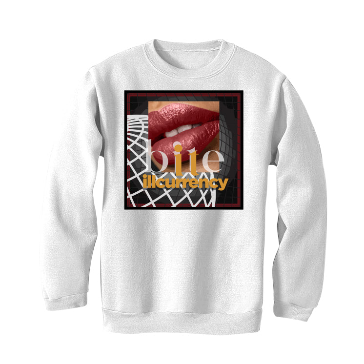 Our tees, sweatshirts, and hoodies say "bite / illcurrency" with the letters "it" duplicated and a mouth with lipstick.