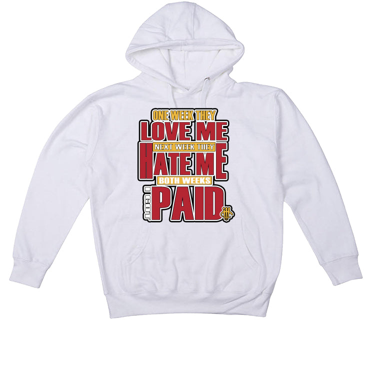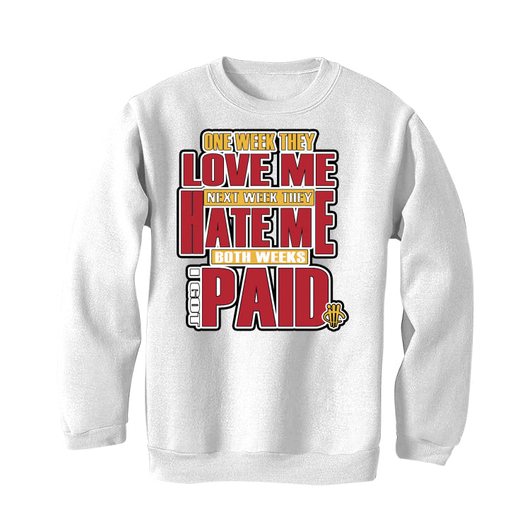 Our statement hoodies, t-shirts, and sweatshirts say "ONE WEEK THEY LOVE ME / NEXT WEEK THEY HATE ME / BOTH WEEKS I GOT PAID."