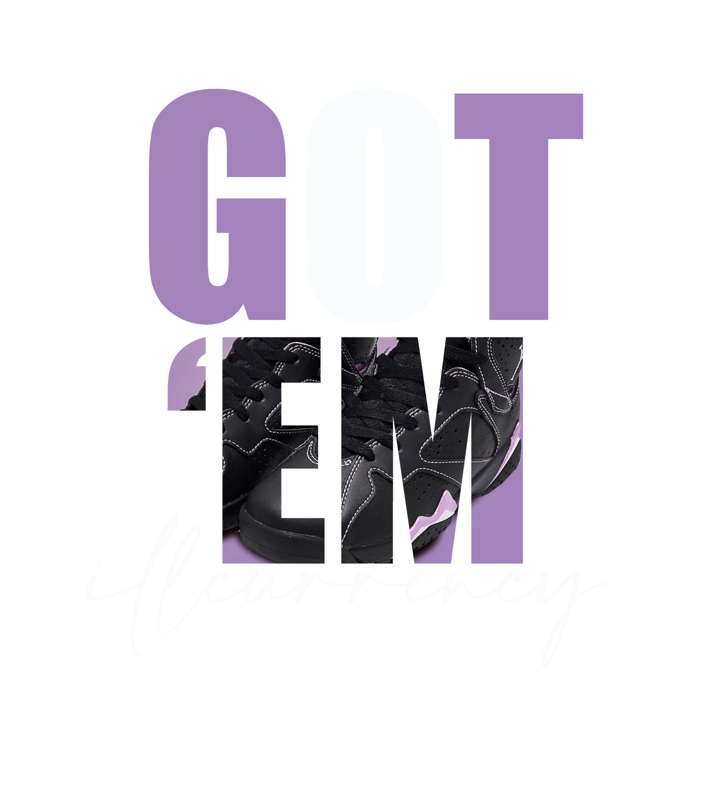 These hoodies, sweatshirts, and tees are printed with an image of the Air Jordan 7 GS “Barely Grape” and the words "got 'em."