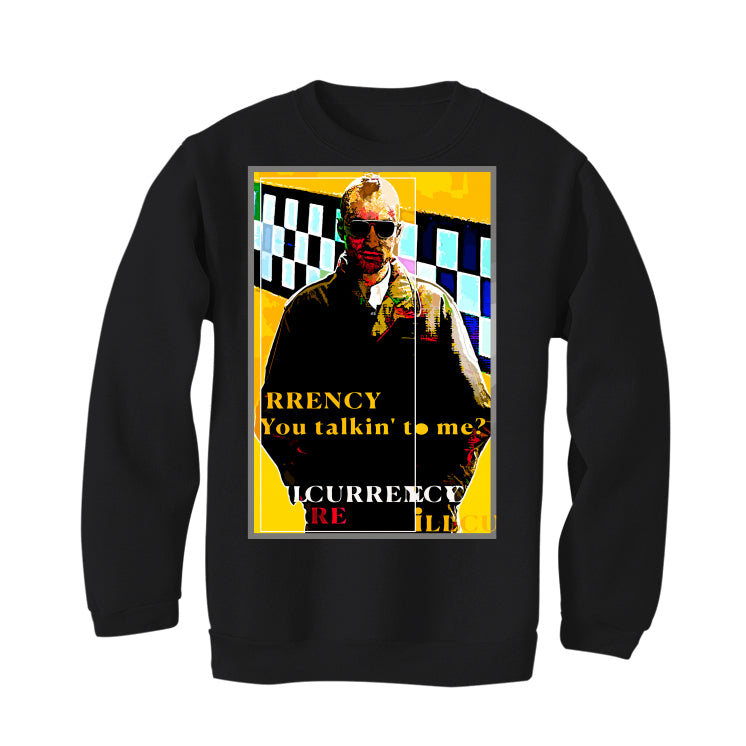 Attention all sneaker enthusiasts! Our unique cotton tops are a must-have for movie lovers and anyone who wants to coordinate with their Air Jordan 8s in the "Taxi" colorway. This color scheme features Black, Taxi, and Opti Yellow, the official Air Jordan 8 colorway. The shoe boasts an all-black base and overlay system, as well as a full leather pattern. Adding a pop of color, a yellow outline can be found on the ankle straps, tongue labels, and rubber midsoles. To complete the bold black and yellow design, a dark outsole anchors the shoe. Our Jordan 8 outfit collections that include t-shirts, hoodies, and sweatshirts proudly display the statement "iLLCURRENCY / You talkin' to me?" featuring a modified image of Robert De Niro in sunglasses set against a checkered background, enclosed in a rectangular border. Don't miss out on this statement piece!