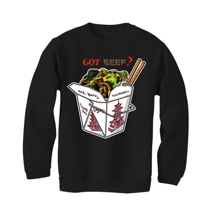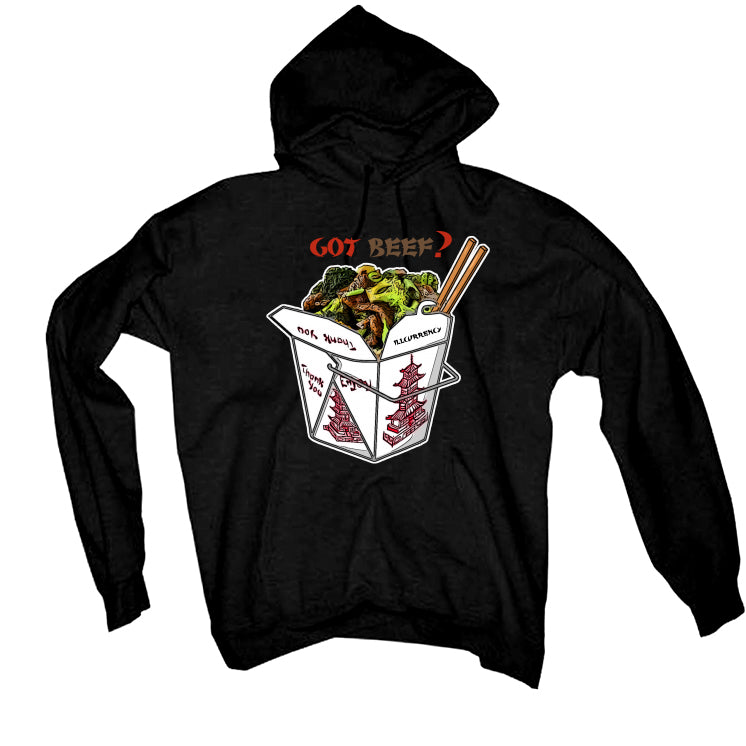 These sweatshirts, t-shirts, and hoodies showcase graphics of beef and broccoli in a Chinese takeout box with chopsticks and the phrase "GOT BEEF?"