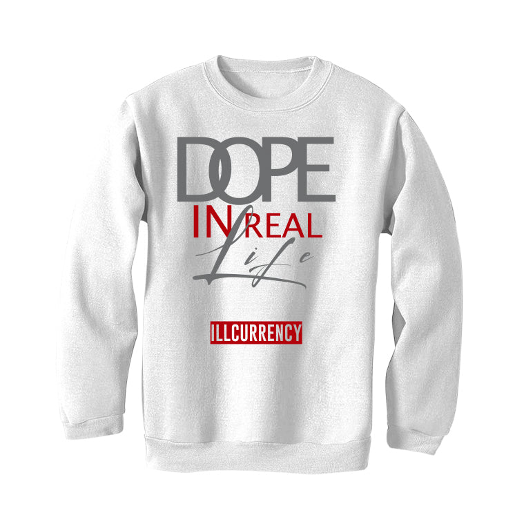 These hoodies, tees, and sweatshirts say "DOPE IN REAL Life / ILLCURRENCY" with a brand name inside a rectangle printed on the fabric.