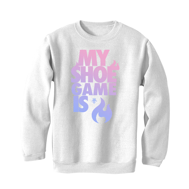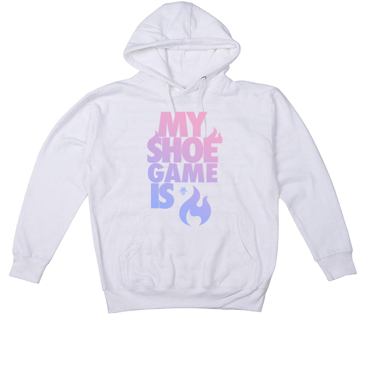 Our graphic t-shirts, hoodies, and sweatshirts feature "MY SHOE GAME IS FIRE / LIT" statement printed on fabric.