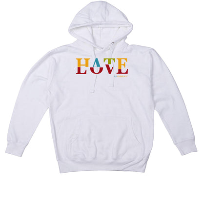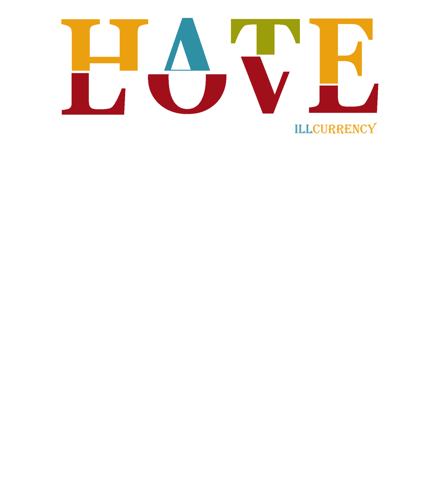 These hoodies, tees, and sweatshirts feature the statement "HATE / LOVE / ILLCURRENCY".