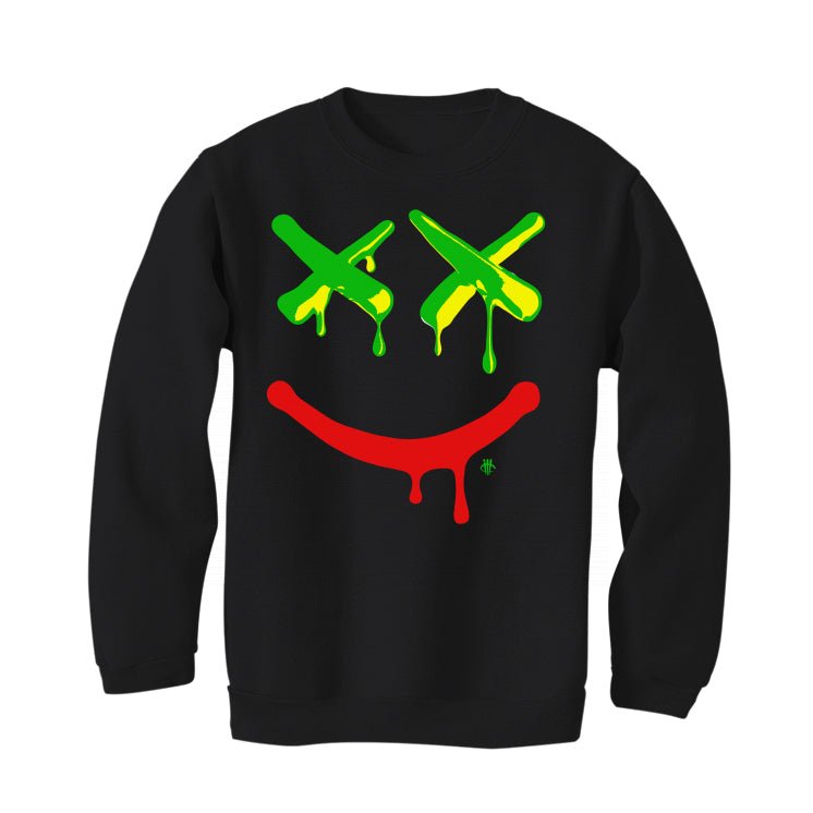 Our collection of graphic Jordan 13 shirts, hoodies, and sweatshirts features a design of an X-eyed smiley face dribbling paint.