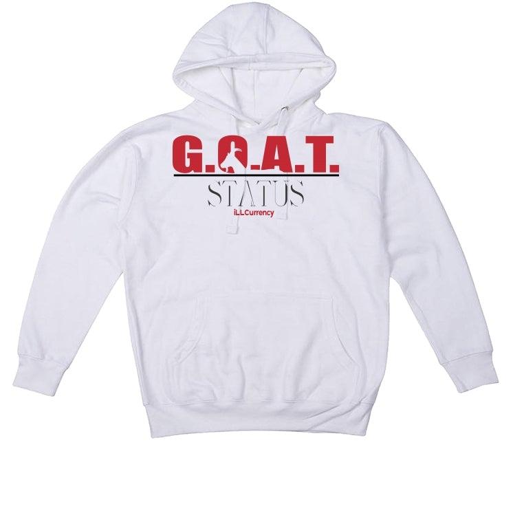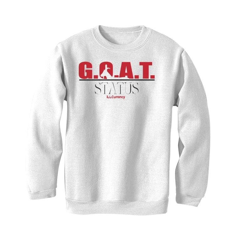 Jordan 4 Retro Fire Red (2020) White T-Shirt (Goat Status quo) is a premium quality sneakerhead t shirt. It matches with the Jordan 4 Retro Fire Red (2020) sneakers.
