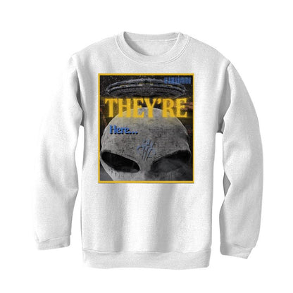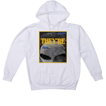 Own the court, own your look with the perfect white shirt for your Laney AJ1s. This premium fabric shirt isn't just comfortable, it's a launchpad for your kicks. illCurrency's exclusive "THEY ARE HERE" graphic featuring a trippy alien complements the Laney's iconic colorway – a tribute to Michael Jordan's high school with its "True Blue" base and "Topaz Gold" accents. This shirt isn't a hanger queen, it's a statement piece. Let the world know greatness has arrived, one legendary Jordan 1 outfit at a time. Rep MJ's legacy and turn heads with this must-have Jordan 1 shirt.