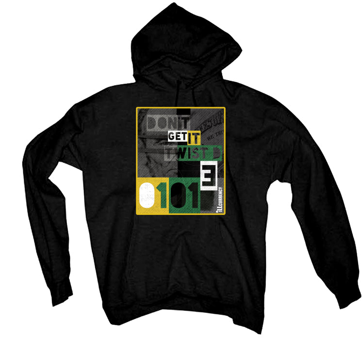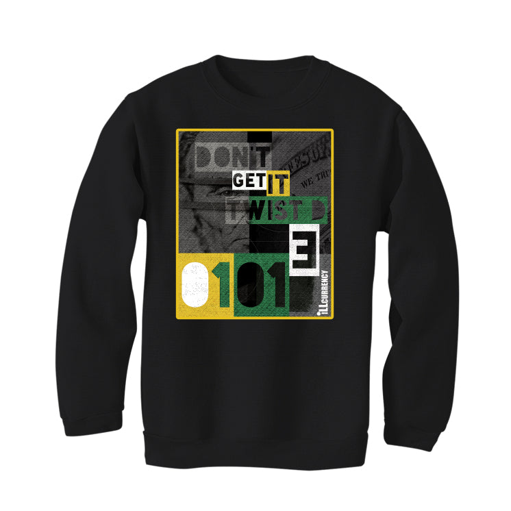 Our tees, sweatshirts, and hoodies come with a textured rose and the words "DON'T GET IT TWISTED" / 0101 / iLLCURRENCY" with textured close-ups of the $5 bill and geometric shapes on top of those, inside a rectangular border.