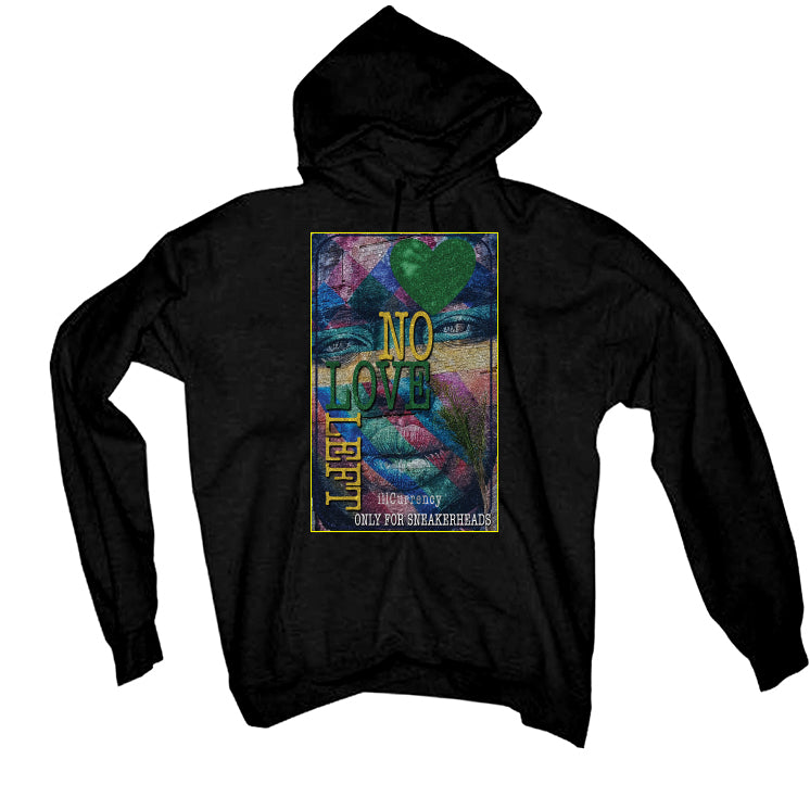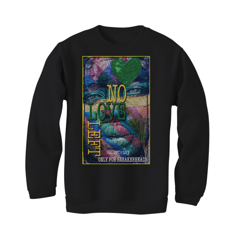 Our tees, sweatshirts, and hoodies come with a textured rose and the words "NO LOVE LEFT / illCurrency / ONLY FOR SNEAKERHEADS" against a textured painting of a face that has geometric patterns, a heart, and a branch inside a rectangular border.