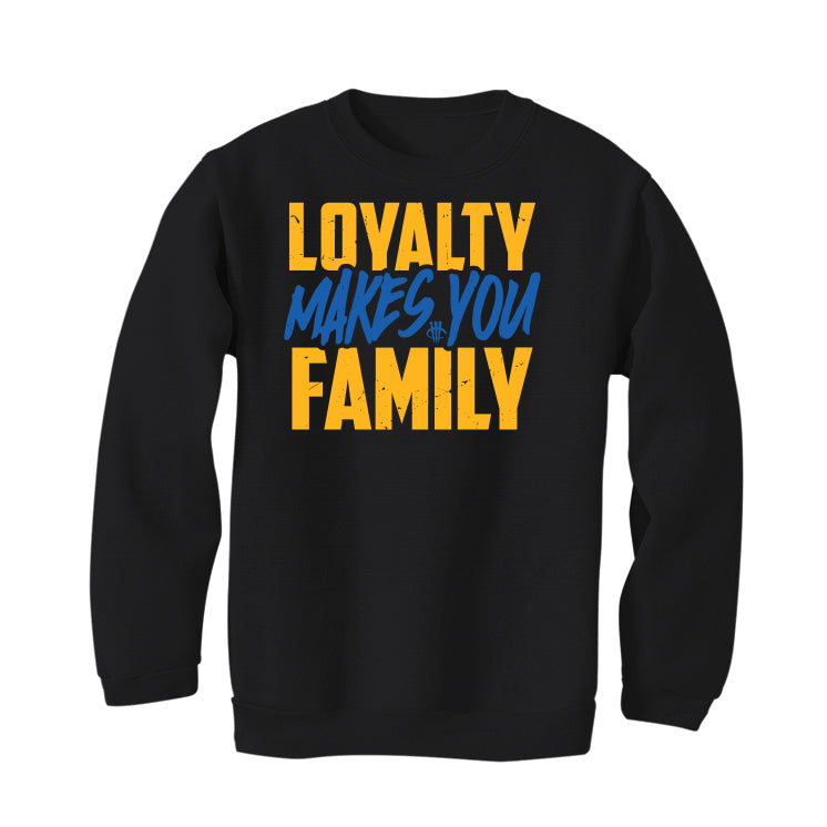 These statement sweatshirts, t-shirts, and hoodies are printed with the words "loyalty makes you family."