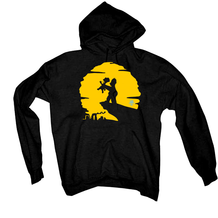 These statement sweatshirts, t-shirts, and hoodies with the Silhouette of Homer choking Bart while standing on a rock against the sun with a small illCurrency logo printed on the fabric.