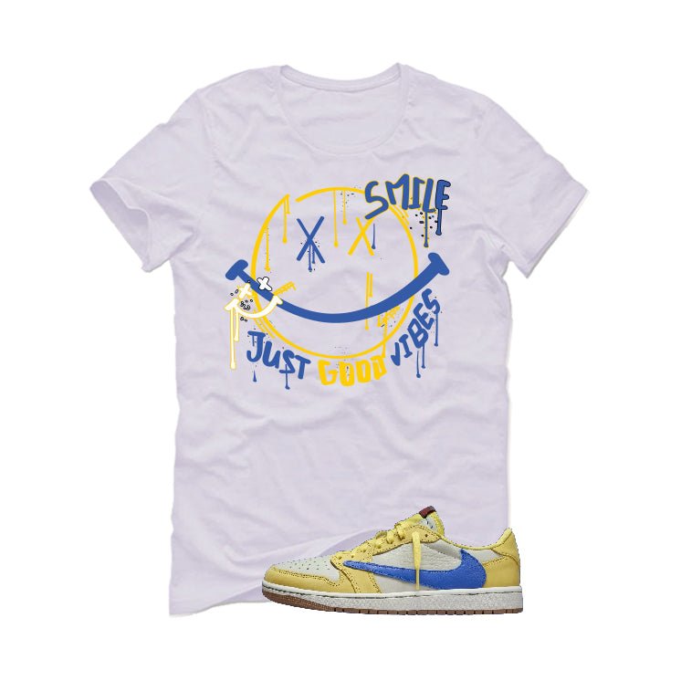 Travis Scott x Air Jordan 1 Low OG “Canary” | illcurrency White T-Shirt (Smile)