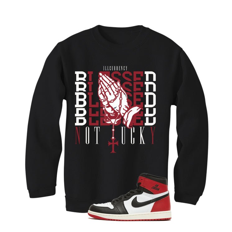 Air Jordan 1 High OG Black Toe Reimagined Black T-Shirt (Blessed not lucky)| illcurrency