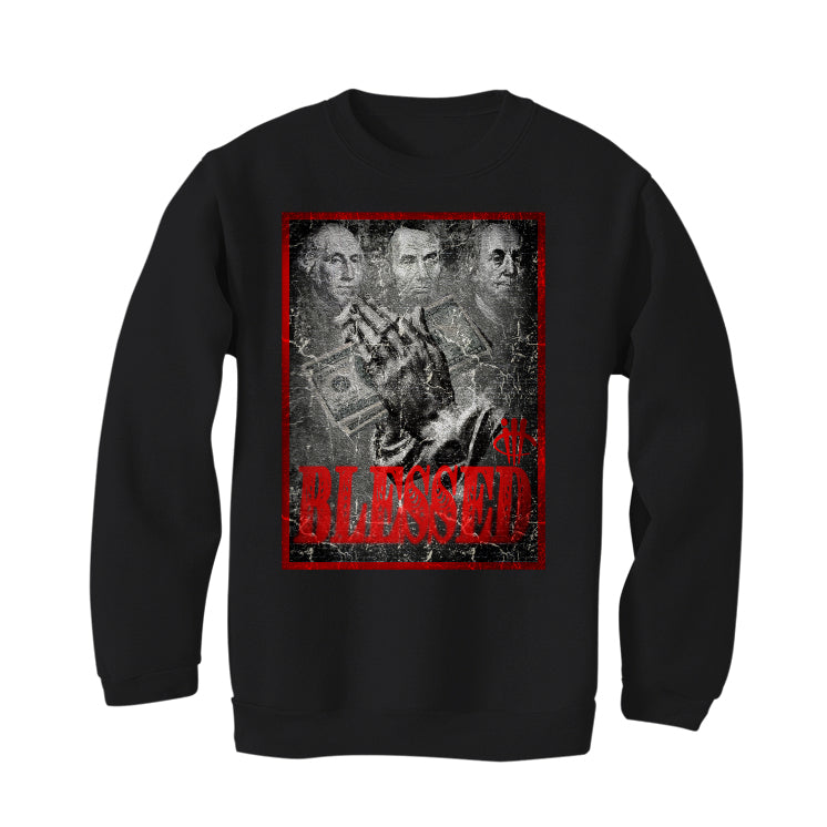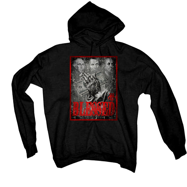 Our tees, sweatshirts, and hoodies say "BLESSED" with praying hands holding cash, and the faces of Washington, Lincoln, and Franklin.