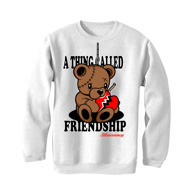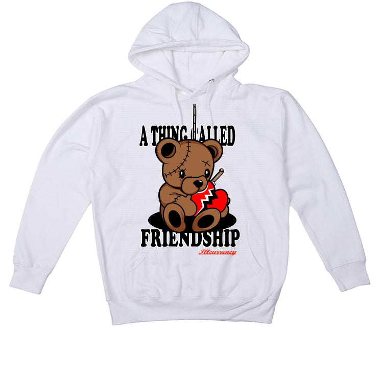 These hoodies, tees, and sweatshirts say "A THING CALLED FRIENDSHIP / Illcurrency" with a drawing of a stitched-up teddy bear holding a broken heart that has a knife in it.