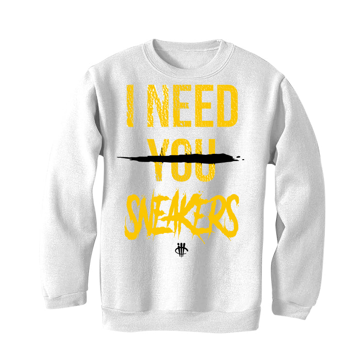 This product comes in a hoodie, t-shirt, and sweatshirt that features the statement "I NEED YOU SNEAKERS" in decorative fonts printed on fabric.