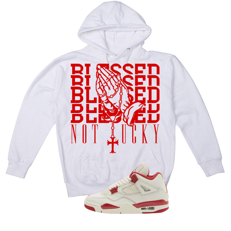 Air Jordan 4 Valentine’s Day (Sierra Red) Matching T-Shirt, Sweatshirts & Hoodies White T-Shirt (Blessed not lucky)| illcurrency