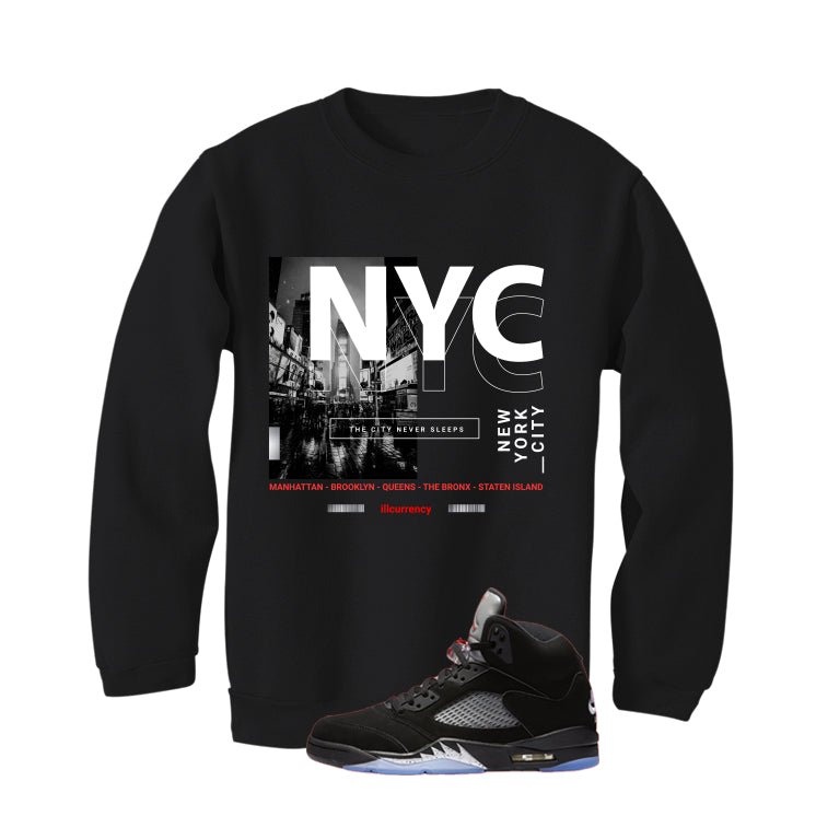 Air Jordan 5 Black Metallic Reimagined Black T-Shirt (City Never Sleeps)| illcurrency