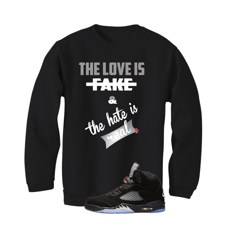 Air Jordan 5 Black Metallic Reimagined Black T-Shirt (Love is Fake)| illcurrency