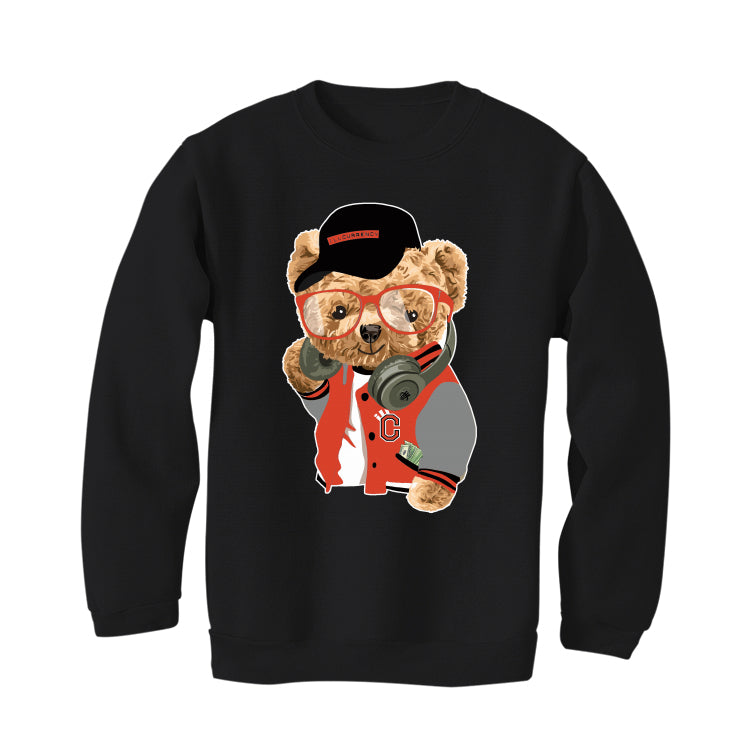 The design has a teddy bear wearing a cap that says "ILLCURRENCY," glasses, headphones, and a letterman jacket with money in one pocket printed on our t-shirts, sweatshirts, and hoodies.