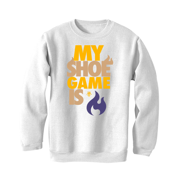 These statement sweatshirts, t-shirts, and hoodies with the phrase "MY SHOE GAME IS FIRE / LIT" statement printed on fabric.