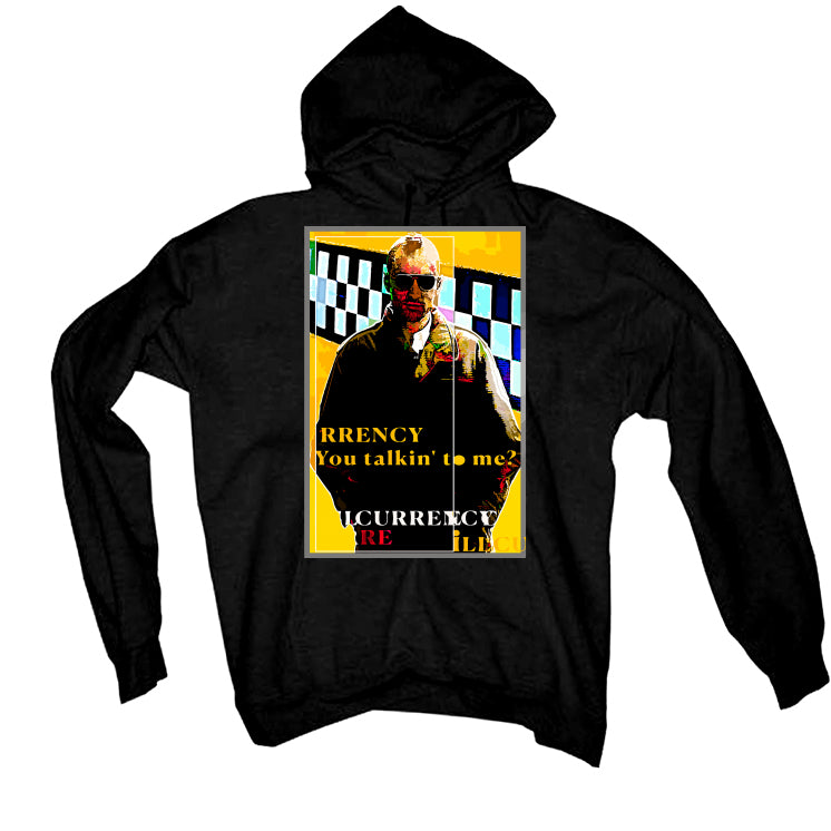 Attention all sneaker enthusiasts! Our unique cotton tops are a must-have for movie lovers and anyone who wants to coordinate with their Air Jordan 8s in the "Taxi" colorway. This color scheme features Black, Taxi, and Opti Yellow, the official Air Jordan 8 colorway. The shoe boasts an all-black base and overlay system, as well as a full leather pattern. Adding a pop of color, a yellow outline can be found on the ankle straps, tongue labels, and rubber midsoles. To complete the bold black and yellow design, a dark outsole anchors the shoe. Our Jordan 8 outfit collections that include t-shirts, hoodies, and sweatshirts proudly display the statement "iLLCURRENCY / You talkin' to me?" featuring a modified image of Robert De Niro in sunglasses set against a checkered background, enclosed in a rectangular border. Don't miss out on this statement piece!