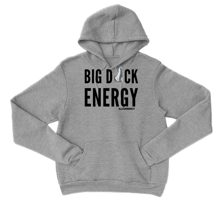These statement sweatshirts, t-shirts, and hoodies say "BIG DICK ENERGY / ILLCURRENCY" with Air Jordan 9 "Fire Red" as the letter I.