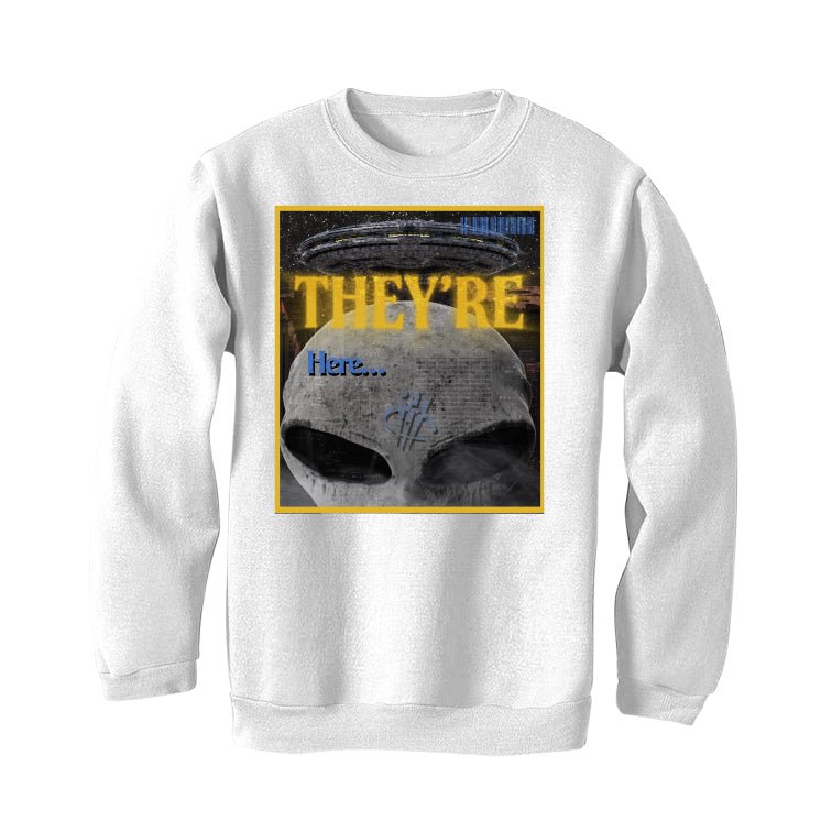 Own the court, own your look with the perfect white shirt for your Laney AJ1s. This premium fabric shirt isn't just comfortable, it's a launchpad for your kicks. illCurrency's exclusive "THEY ARE HERE" graphic featuring a trippy alien complements the Laney's iconic colorway – a tribute to Michael Jordan's high school with its "True Blue" base and "Topaz Gold" accents. This shirt isn't a hanger queen, it's a statement piece. Let the world know greatness has arrived, one legendary Jordan 1 outfit at a time. Rep MJ's legacy and turn heads with this must-have Jordan 1 shirt.