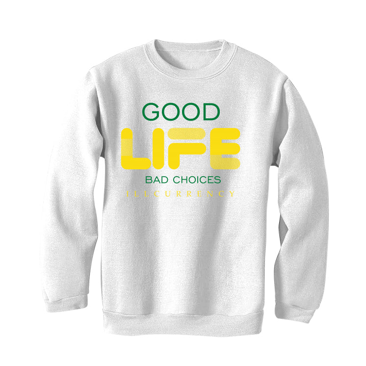 On our t-shirts, sweatshirts, and hoodies, the words “GOOD LIFE / BAD CHOICES / ILLCURRENCY".